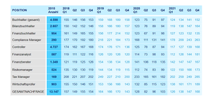 Die Controller, welche die größte Berufsgruppe im Finanzwesen stellen , hatten einen Nachfragerückgang um 26 Prozentpunkte auf 71 Prozent zu verzeichnen.