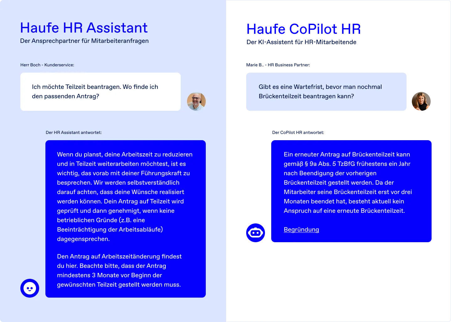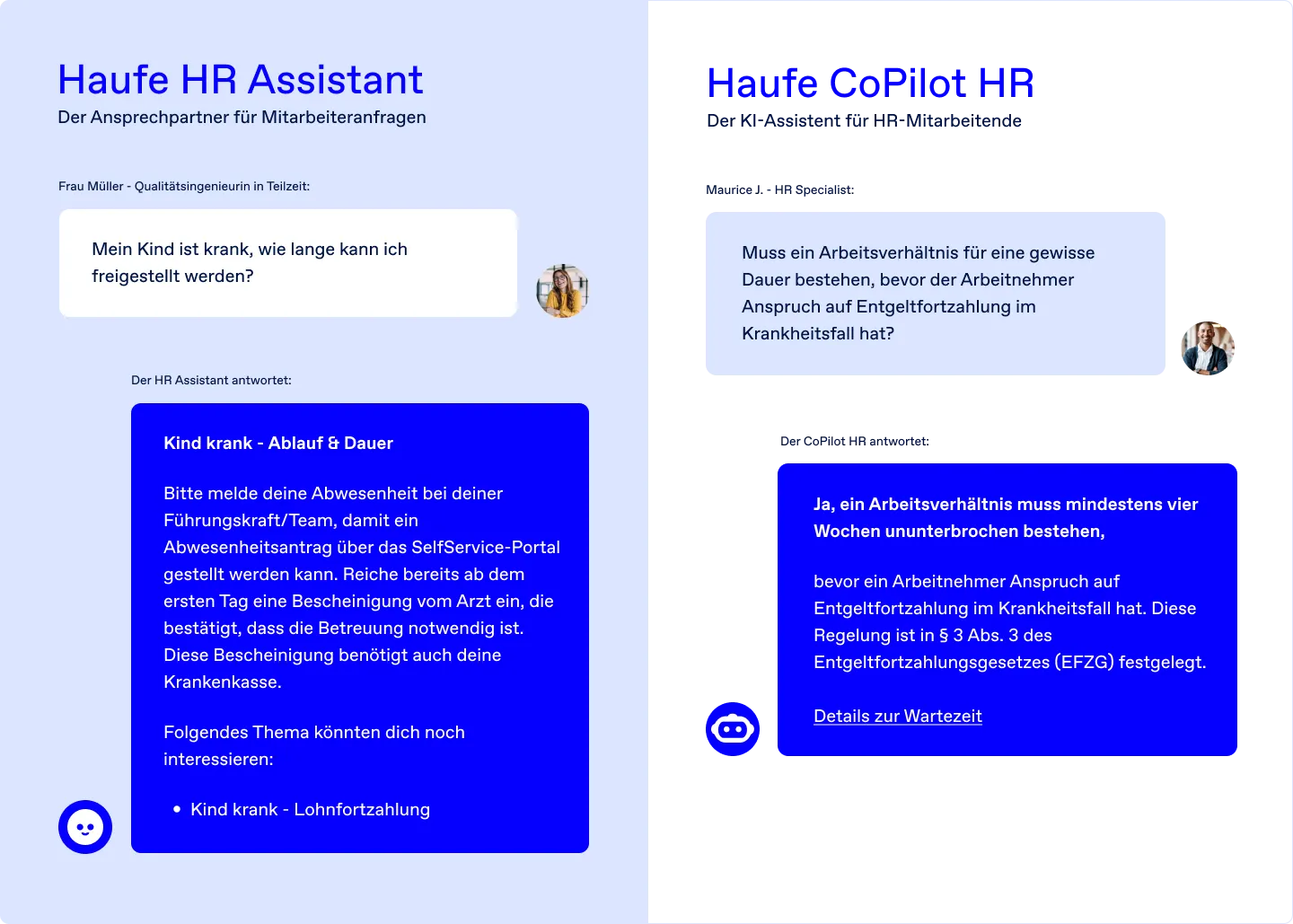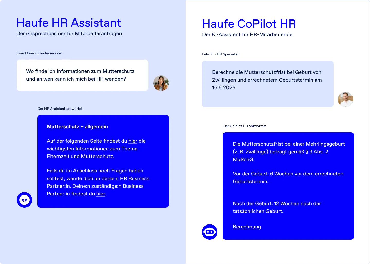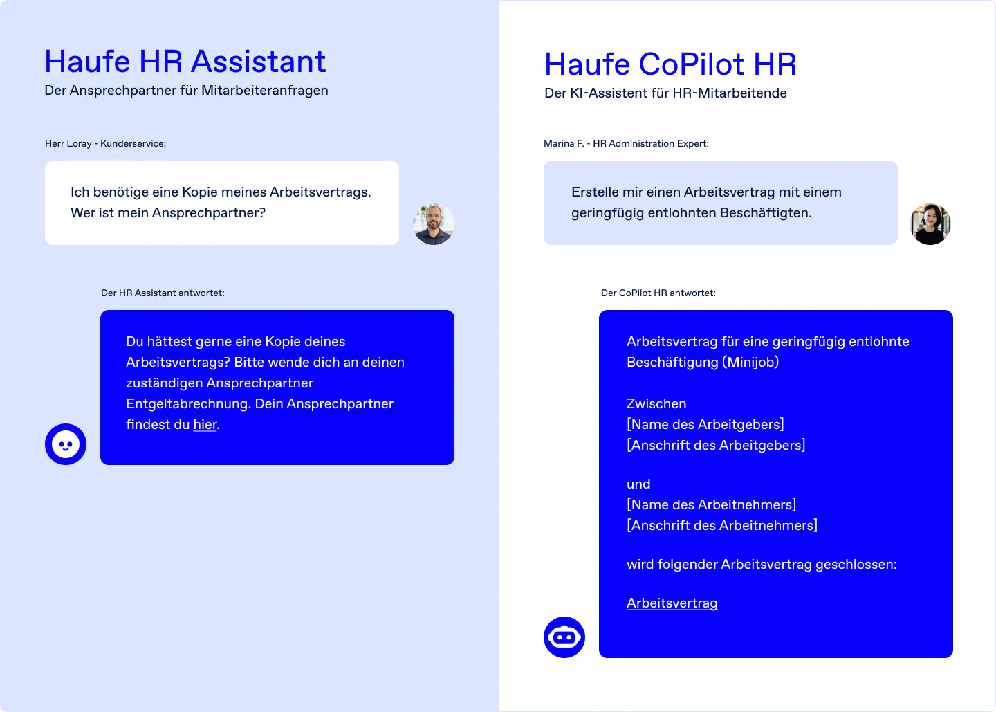 Der CoPilot HR und der Haufe HR Assistant unterstützen Sie auf unterschiedliche Weise bei Ihrer täglichen Personalarbeit: