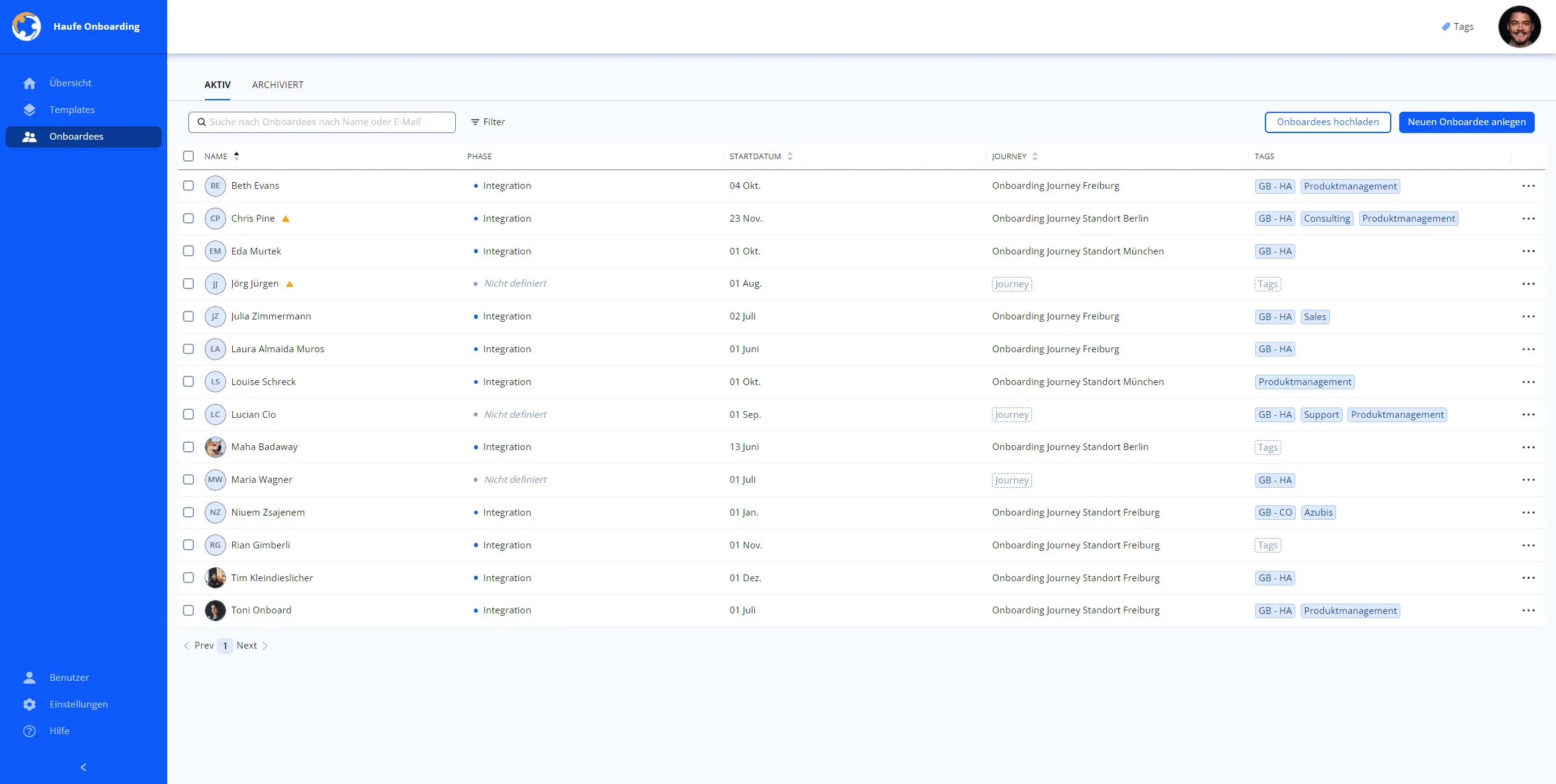 Ja, Sie können die gesamte Onboarding Journey in der Software abbilden, ab der Vertragsunterschrift bis zum Ende der Probezeit und damit auch die einzelnen Phasen, z.B. eben die der Einarbeitung.