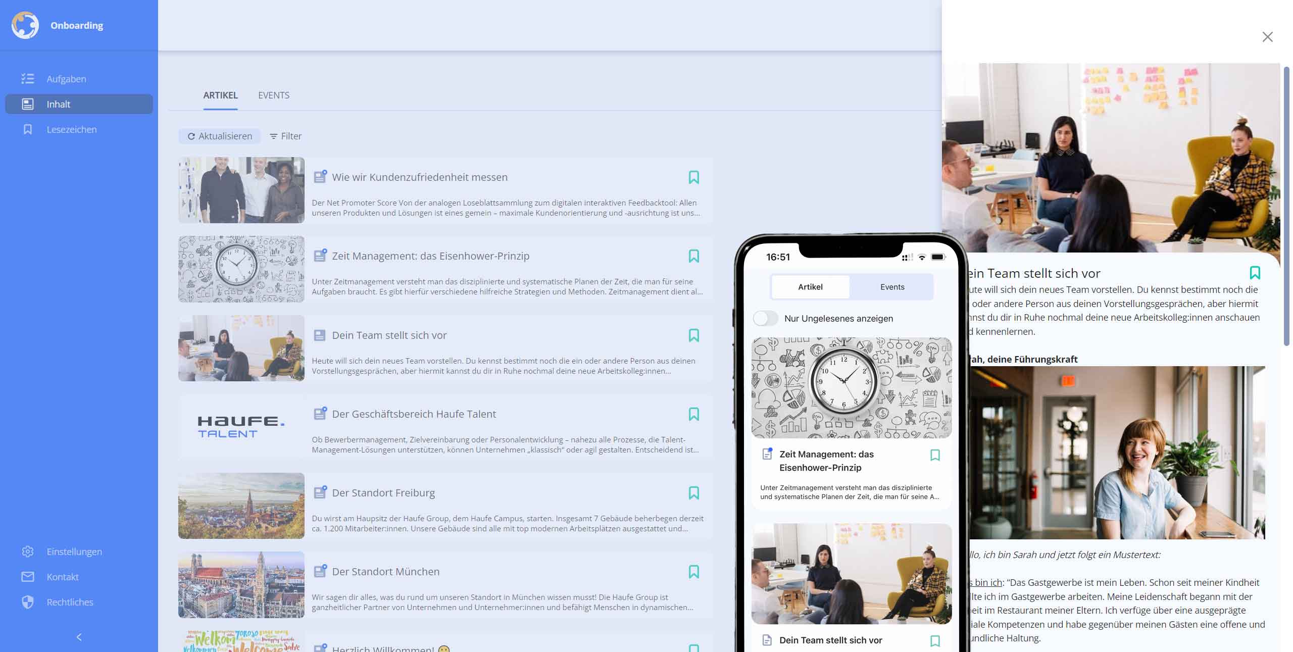 Ja, Sie können Ihren neuen Mitarbeiter:innen bereits vor dem ersten Arbeitstag, z.B. ab der Vertragsunterschrift, über die Onboarding (Web-)App sämtliche Inhalte zur Verfügung stellen.