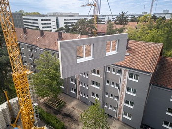 Integriertes Konzept Erlangen Hoch hinaus: Serielle Sanierung trifft Aufstockung Die serielle Sanierung ermöglicht eine energetische Ertüchtigung ganzer Wohnquartiere im laufenden Betrieb. Die Gewobau Erlangen realisiert mit der Niersberger Group Deutschlands größtes Projekt mit 340 seriell ertüchtigen Wohnungen und einer Aufstockung, die zusätzlich 130 Einheiten schafft.