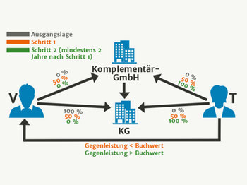 Gewinne, die bei der Veräußerung eines Teils eines Mitunternehmeranteils entstehen, sind laufende Gewinne, die nicht zu den gem. § 34 Abs. 2 Nr. 1 EStG begünstigten Veräußerungsgewinnen zählen. Fraglich ist, wie eine Anteilsübertragung gestaltet werden kann, wenn ein Gesellschafter seinen Mitunternehmeranteil in mehreren Schritten auf einen Angehörigen übertragen will.