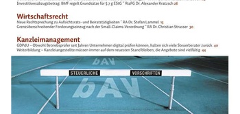 Der "SteuerConsultant" bereitet fundierte Gestaltungen, Analysen, Tipps und Trends in attraktiver Form für Sie auf. Modernes Magazinformat plus fundierte Fachinformationen plus Zitierfähigkeit.